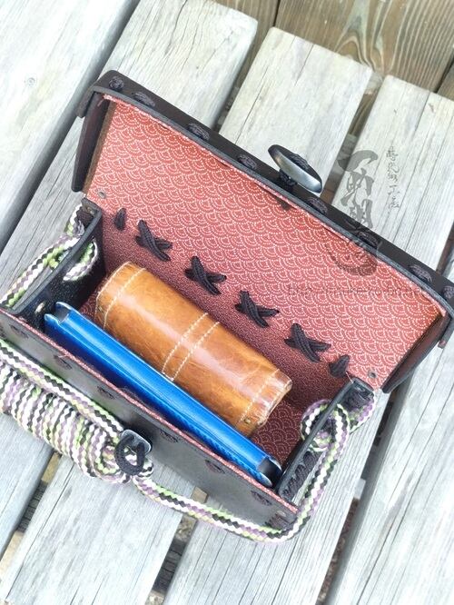 鉄砲隊の再現演武での火薬入れにお使いになるのはもちろん、忍者装束や着物・甲冑など時代装束・時代劇扮装や和装コスプレ時のスマホや財布の携行におすすめです。